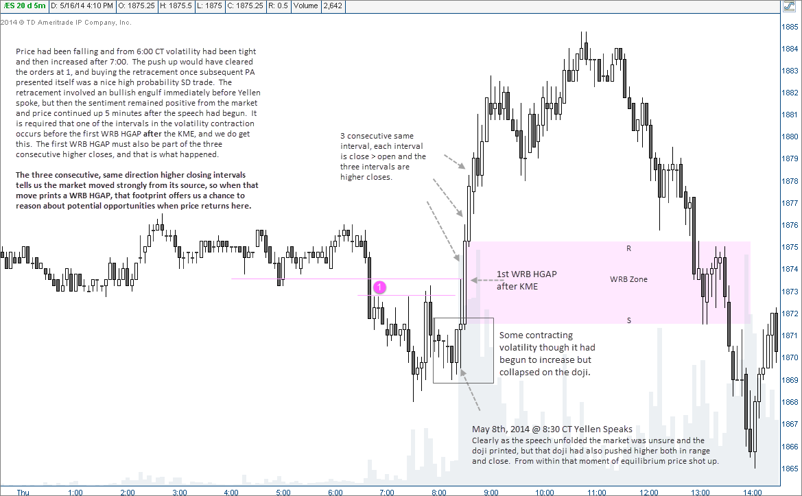 Reminder - My trade performance involves part science, part psychology, part art and those using TheStrategyLab trade methodology only have access to the part science aspect that consist of the WRB Analysis Free Study Guide, Advance WRB Analysis Tutorial Chapters and many different trade signal strategies. To be up front, I do not believe you can be a profitable trader via technical analysis (science) alone and nothing else. Therefore, to share with you our WRB Analysis Free Study Guide is only a piece of the puzzle to my trading although it is your starting point.Your "demonstration of knowledge" (DOKs) must teach the readers of your DOKs about WRB, Key Market Events (KME), WRB Hidden GAP (WRB HG), First WRB HG, Volatility Contraction (VC or CV), WRB Zone, RANGE or any other price action definitions associated with a particular tutorial chapter and trade signal strategy as if the reader does not know anything about WRB Analysis. Therefore, you must annotate (label) the price action intervals in your DOK charts with those descriptive words as shown in the chart examples below that represent DOKs of other clients.