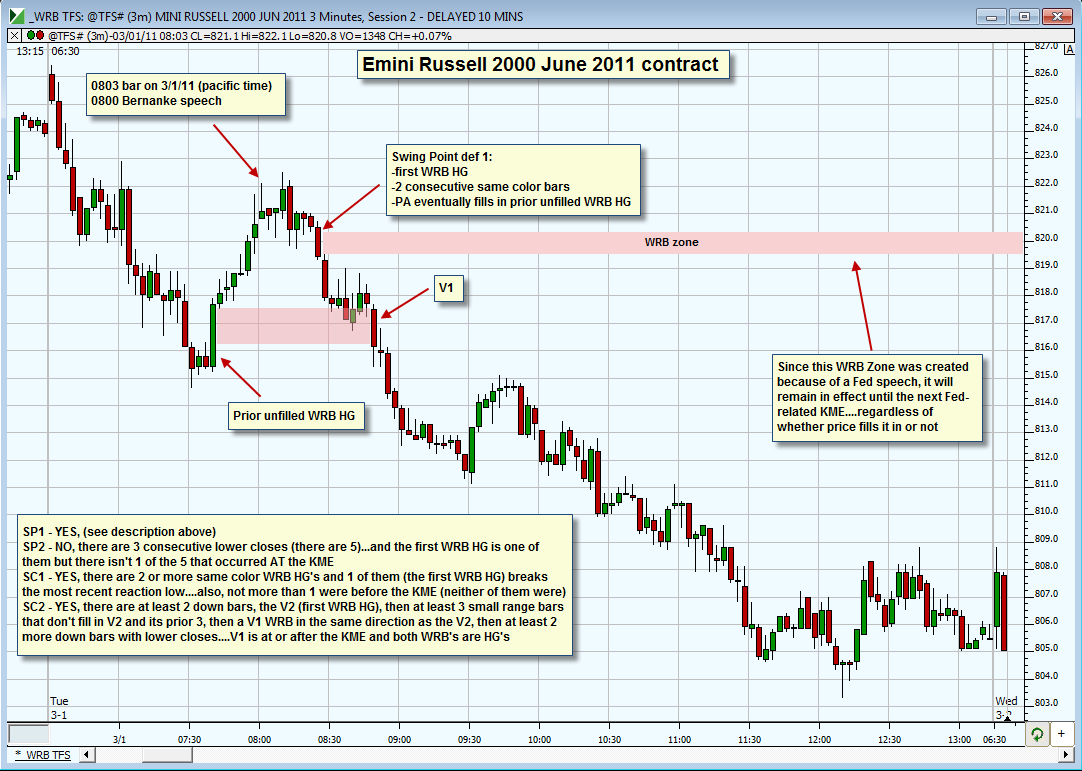 Show a minimum of one chart example for each basic tutorial chapter that's annotated with arrows or lines pointing to the key components that were discussed in the tutorial chapter as shown in the below chart examples. In addition, your message post must contain a brief commentary by you that quotes the price action definition from the tutorial along with a brief commentary to explain the price action on your chart example. For example, if the WRB Zone is caused by "swing point definition #1", you must specifically say that on your chart or in your message post commentary that its via "swing point definition #1". Another option is to just post the exact quote of "swing point definition #1". Simply, if you just say it's a WRB Zone (although valid) without explaining what price action definition you've used to arrive at that conclusion...it is not a "demonstration of knowledge" (DOK).